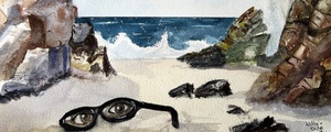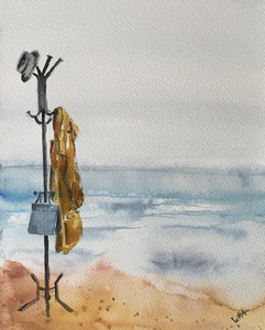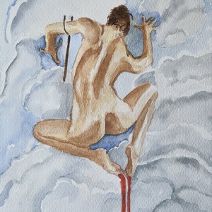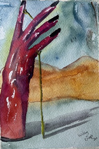 Door te spelen met zachte en harde overgangen en gebruikmakend van wit ruimtes en warme kleuren is deze aquarel ontstaan