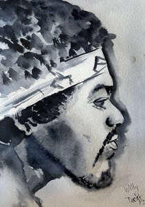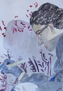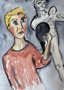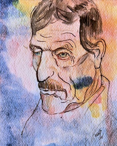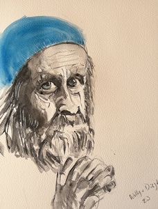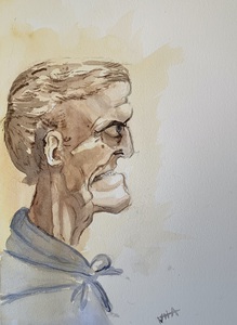 2024Geïntrigeerd door deze man Aquarel en inkt