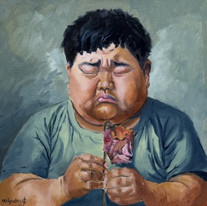 2025Eerste schilderij van het tweeluik: Never Satisfeid Schilderijen zijn los of samen te koop. Ingelijst kan ook