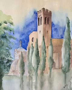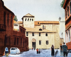 2021Deze basiliek in Rome, waar binnen veel te zien is, moést ik schilderen. Zo zie ik het nog steeds voor me!