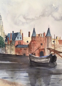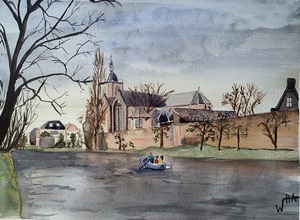 2021Een aquarel van de Grote kerk in Vianen, gebouwd in de middeleeuwen.